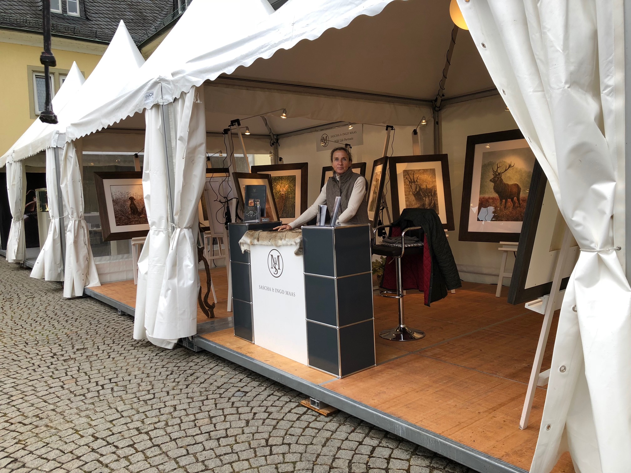 Auf dem Klostergut Jakobsberg fand die exklusive Veranstaltung „Edle Jagd“ mit ausgewählten Partnern aus den Bereichen Jagd, feinstem Handwerk und Kunst statt. Alle beteiligten Aussteller waren Waidleute und Experten ihres Fachs. Sascha Bianca und Ingo Maas bereicherten das umfangreiche Portfolio mit ihren großformatigen Kunstwerken und Auftragsarbeiten.