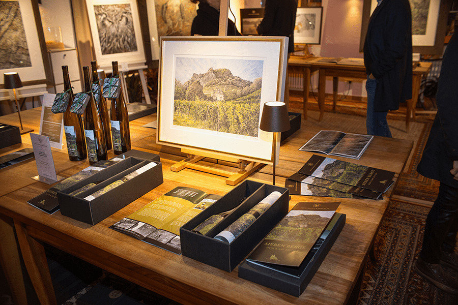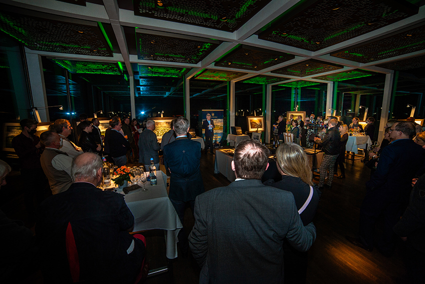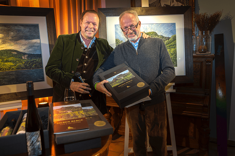 Am Abend des 12.11.2021 wurde die limitierte Siebengebirgs-Art Edition „Über Sieben Berge – Das Gute liegt so nah“ in festlichem Rahmen vorgestellt. Mit vier wunderbaren Alphornbläsern, Weinen aus den Steillagen des Siebengebirges und rheinischen Köstlichkeiten bot der Glaskubus auf dem Drachenfels-Plateau einen fantastischen Blick ins Rheintal. Hans Peter Lindlar, Vorsitzender des Verschönerungsvereins für das Siebengebirge und ehem. Regierungspräsident Köln hielt die Begrüßungsrede und Helmut Stahl, Präsident der Alexander-Koenig-Gesellschaft, führte in das Werk und die Arbeitsweise von Sascha Bianca und Ingo Maas ein. Den feierlichen Abend moderierte die Fernsehjournalistin Simone Standl.