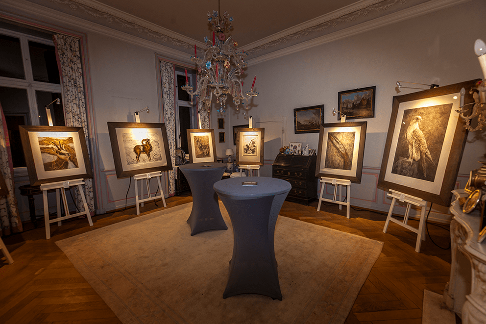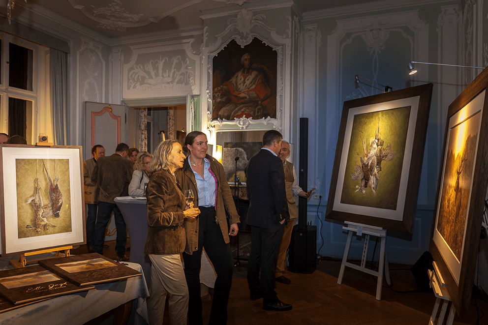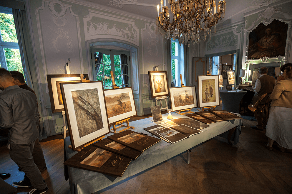 Am Abend des 6.10.2023 wurde die limitierte Edition EDLE JAGD auf Einladung von Franz von Jordans in festlichem Rahmen auf Burg Morenhoven vorgestellt. Die Begrüßung und Moderation durch den Abend erfolgte durch die Fachjournalistin Gabriele Metz (Magazin HALALI u.a.) Die jagdliche Edition enthält in einer exklusiven mit Fellhaptik und Goldprägung versehenen Portfolio-Mappe im XL-Format sieben High-Quality Art Prints, von den Künstlern nummeriert und signiert sowie eine 40-seitige Broschüre mit zahlreichen Abbildungen und Erläuterungen zu den Kunstwerken.